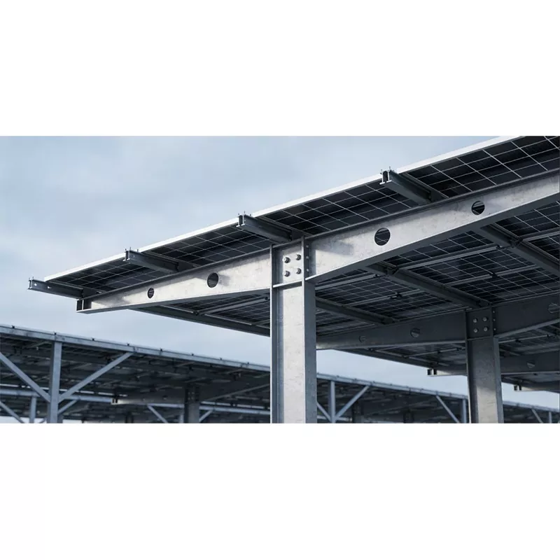Shunchen Industriali hoolikalt valmistatud päikeseenergia autovarjukonstruktsioon on uuenduslik komposiitsüsteem, mis ühendab fotogalvaanilise elektritootmise ning sõiduki päikese- ja vihmakaitse, hõlmates nii teras- kui ka alumiiniumsulamist konstruktsioone. See kasutab terasprofiilidest ja ruudukujulistest torudest valmistatud tugevat raami, mille ülaosas on nutikalt integreeritud fotogalvaaniliste moodulite toed ja ülitõhusad fotogalvaanilised paneelid, samas kui põhi on varustatud stabiilsete sammaste, vundamentide ja täpsete parkimispiirangutega. See saavutab kahekordse kõrge efektiivsusega eelised: "päikese- ja vihmakaitse + võrguga ühendatud elektritootmine", muutes selle laialdaselt kasutatavaks mitmesugustes parkimisstsenaariumides, nagu tööstuspargid, tehased, ärikompleksid ja elamurajoonid.